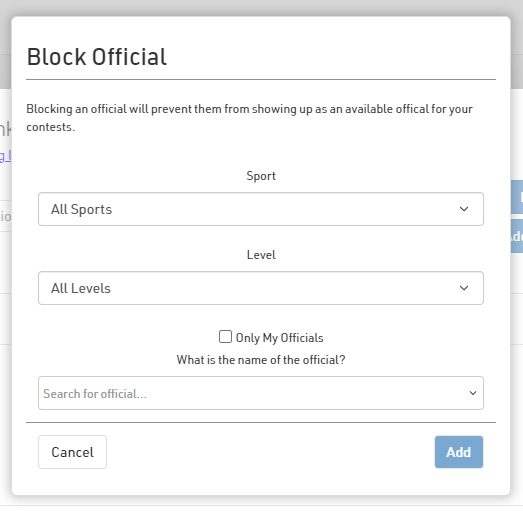 Schools : How do I block an official | DragonFly Athletics Help Center