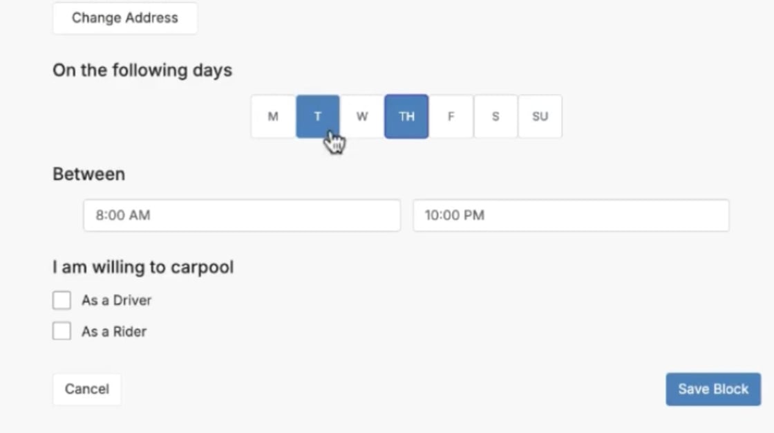 Select what days and times you'd like this block to apply and finish by clicking Save Block.