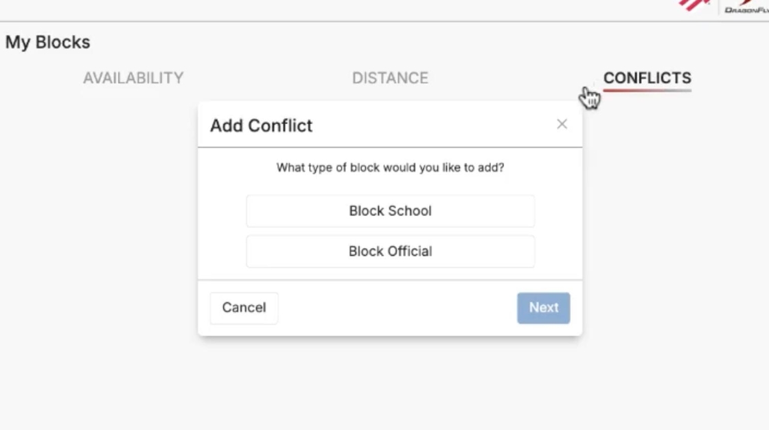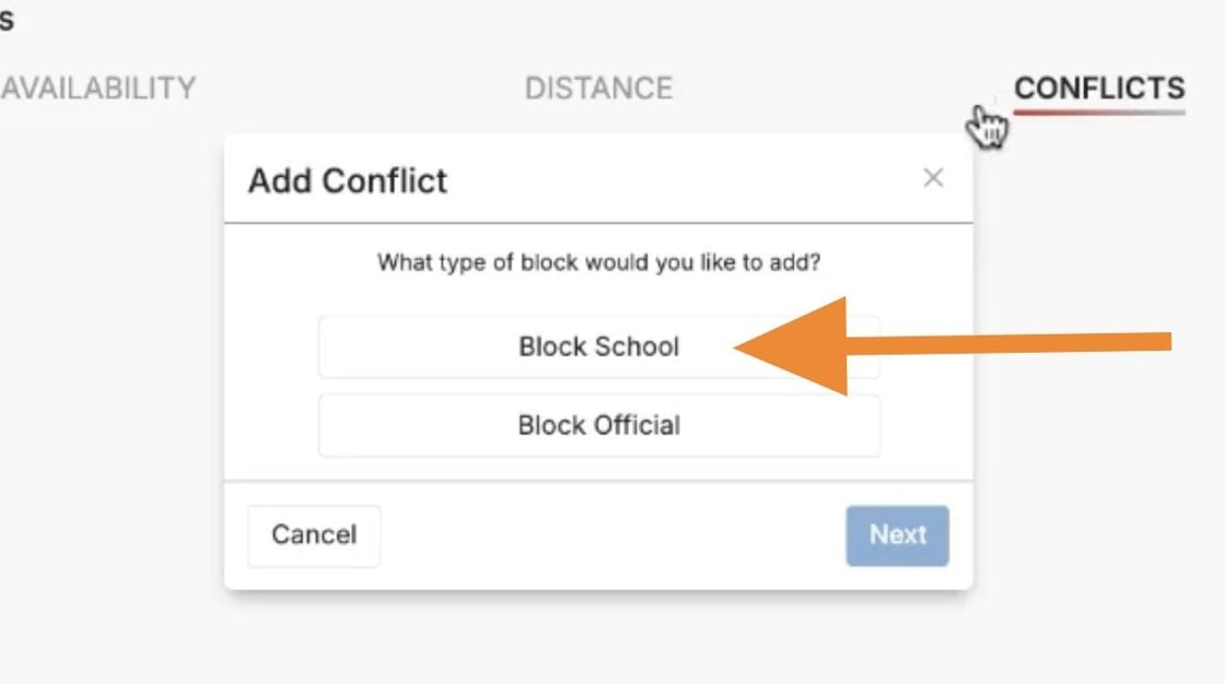 There are two kinds of conflict blocks: an Official Block and a School Block. We'll go through both below.