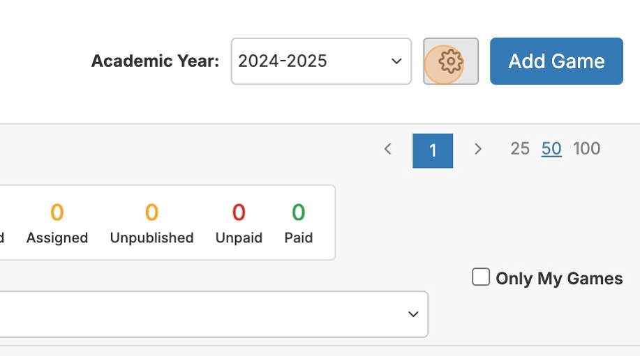 Instead of applying policies game-by-game, you can set up an organization-wide turnback policy. To get started, click the Settings gear icon in the game schedule.