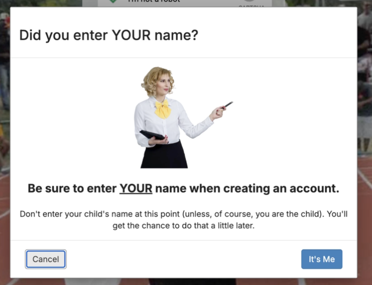 Ensure you are creating the account for yourself, not for someone else (e.g., child or spouse).