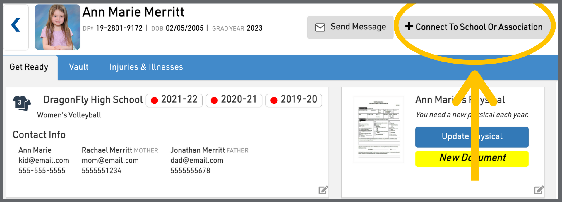 Athletes can update the school on their profile through the DragonFly website in the event of a transfer or moving to high school.