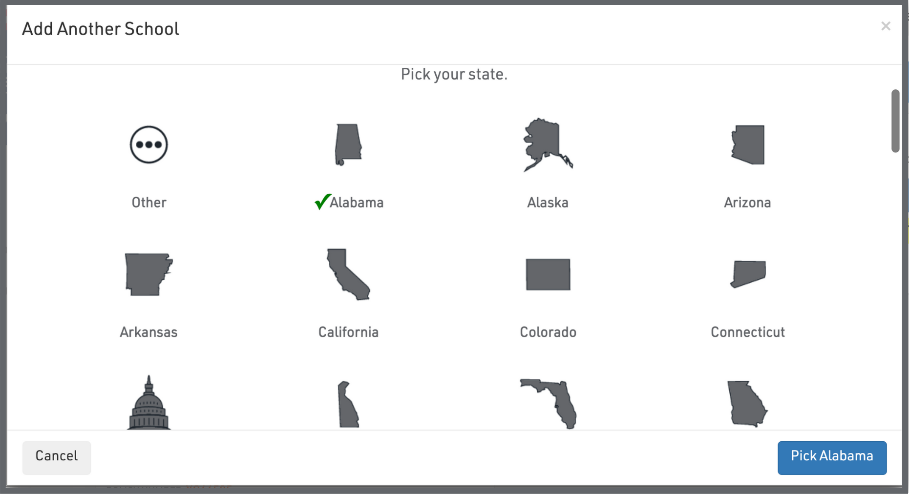 2. Select the 'Connect to School or Association' button in the top-right corner.