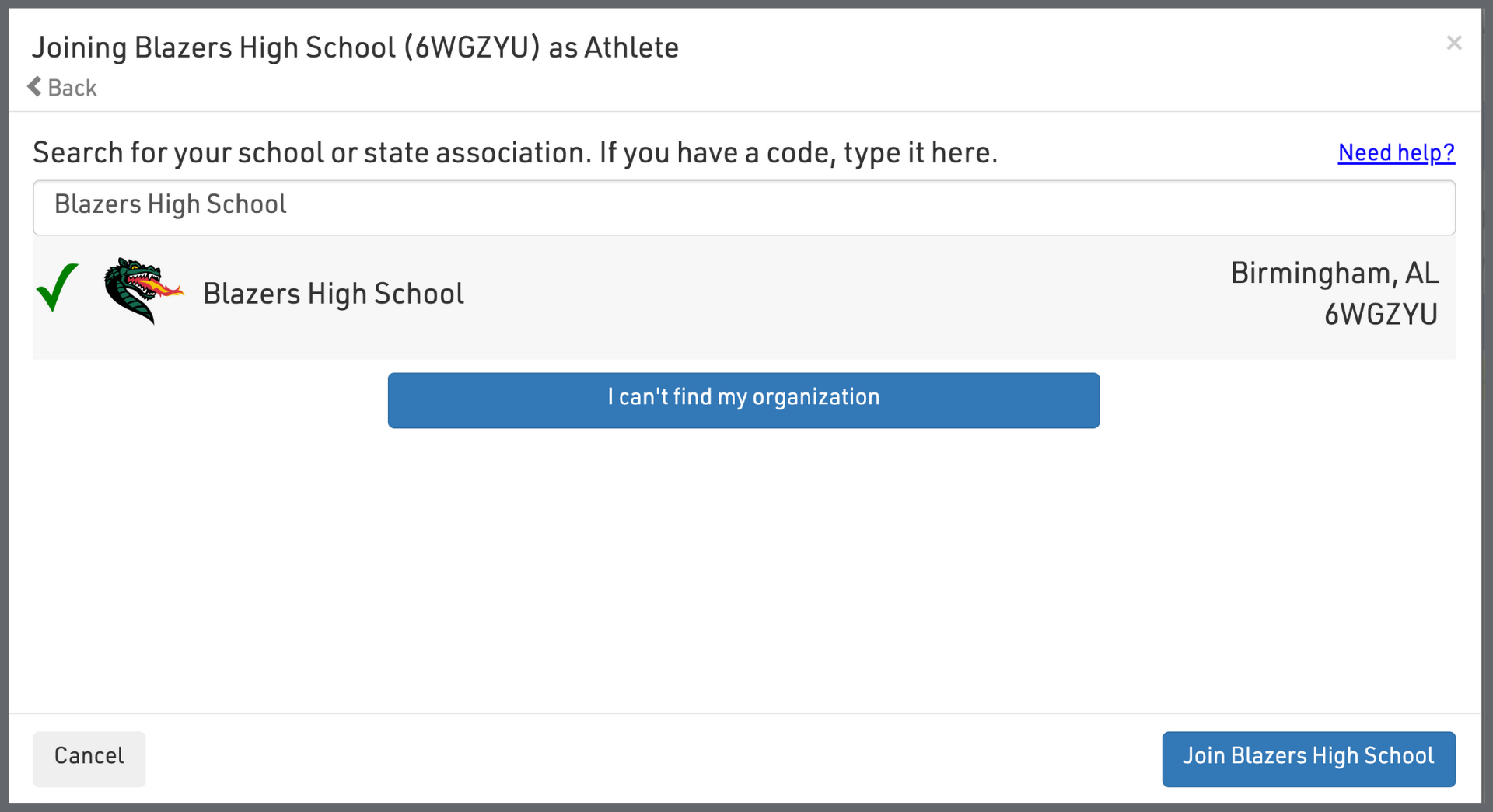 4. Search for your new school by name, then select that school from the list and click the 'Join' button in the bottom corner.