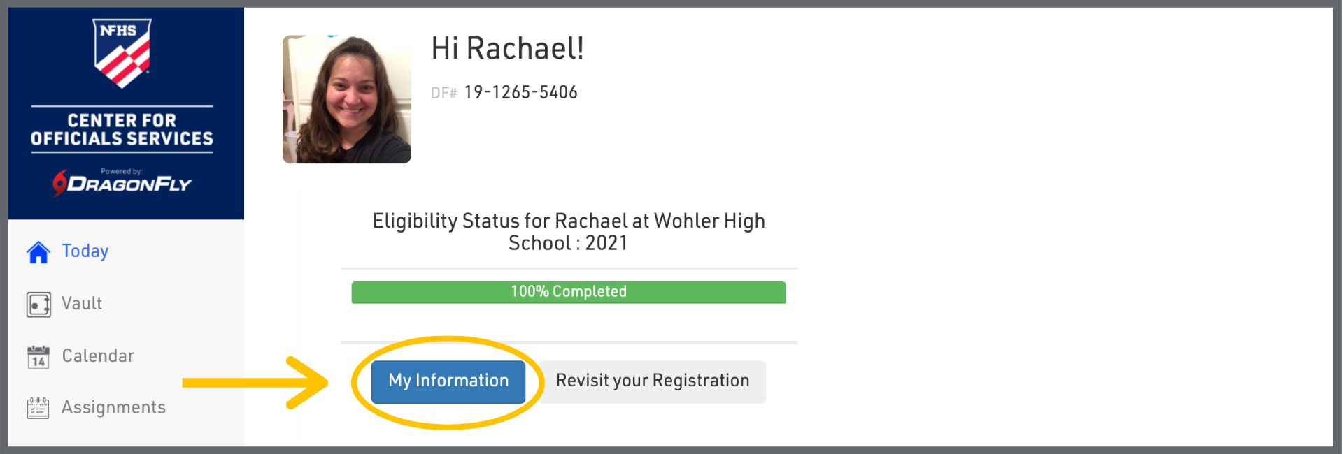 1. Log in to DragonFly on your computer's web browser and click on the 'My Information' button on your Today page.