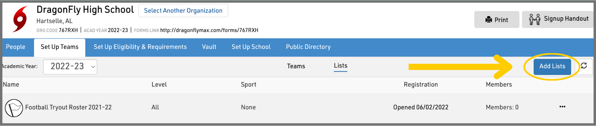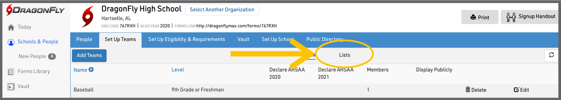 Teams and lists will help you organize student information in DragonFly.