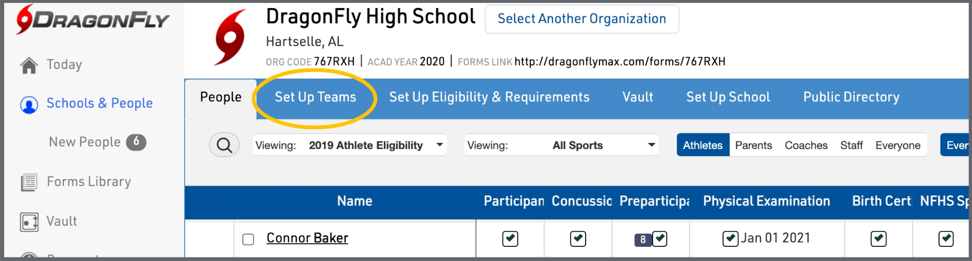 4. If you used DragonFly in the previous academic year, your teams (not including athletes) will be copied over to the upcoming year.
