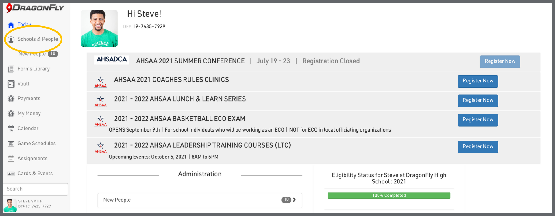 1. Log in on your computer's web browser and select 'Schools and People' in the left-side menu.